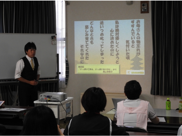 7月10日(水) 株式会社 きらめき介護塾 代表取締役 渡 辺 哲 弘 氏をお招きし、「認知症ケア」について職場研修を開催しました。