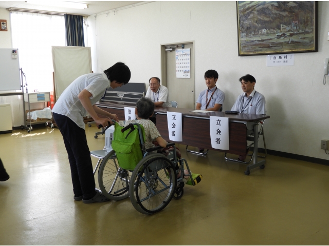 7月17日(水)に佐屋苑会議室において、参議院議員選挙の不在者投票を行いました。事前に投票希望のあった利用者25名が参加されました。選挙区と比例代表の2種類あるので、戸惑う利用者もいらっしゃいましたが、貴重な一票を投じて頂きました。
