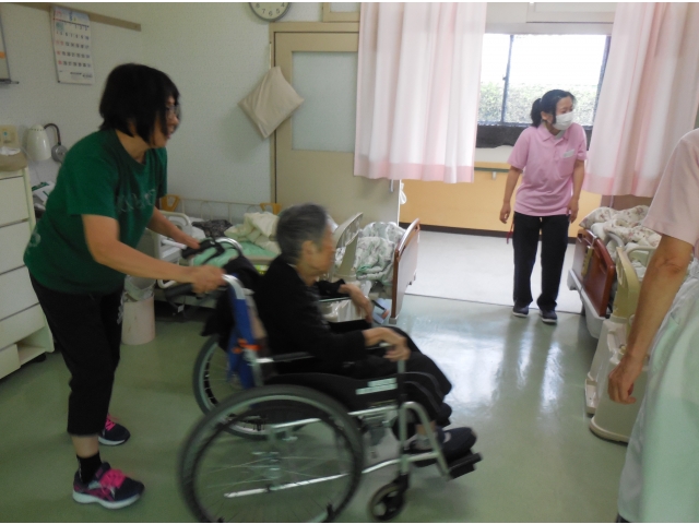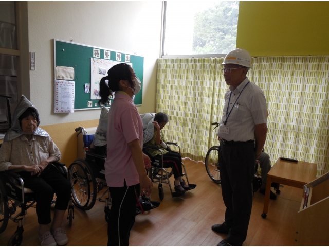 8月20日(火)に風水害対応訓練を行いました。 今回の訓練では暴風雨のBGMを流し、日中の台風接近による居室のサッシガラス破損を想定しました。4名の利用者様を介護員が食堂まで誘導しました。1名怪我を負った場合を想定し、看護師が手当し、その後の苑長への報告もスムーズに行うことが出来ました。 自然災害は起きないことが一番ですが、いつ起きてもすぐに対応できるようこれからも定期的に訓練を行っていきます。