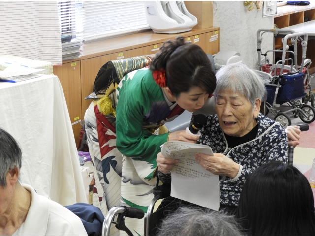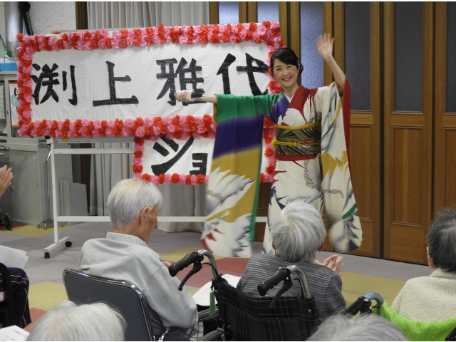 11月7日(木)に、お隣の佐屋デイサービスセンターさんからお招きいただき、渕上雅代歌謡ショーへ出掛けてきました。懐かしい歌を一緒に口ずさみ、渕上さんと一緒に歌い、大盛り上がりの中で楽しい時間を過ごしました!