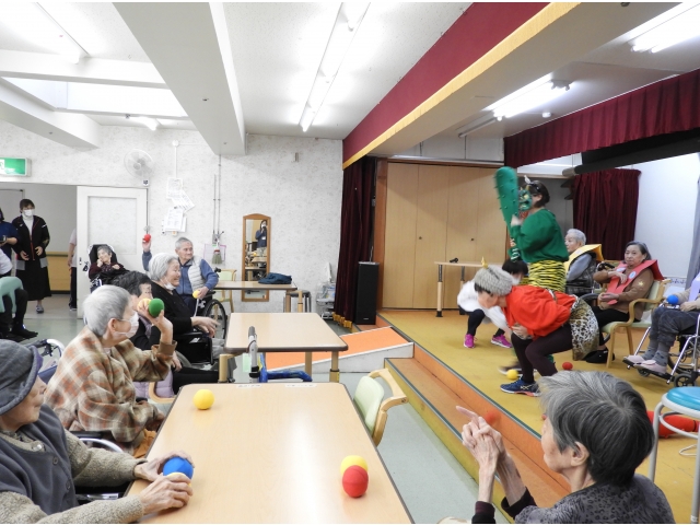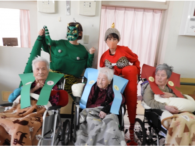 2月3日(月)に節分会を行いました。佐屋苑では、西棟5名、東棟3名、職員の年男、年女がいます。元気な青鬼、セクシーな赤鬼にみんなで豆まきをし、今年の無病息災の願いを込めました。