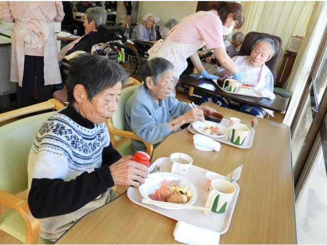 どのご利用者もお代わりをされており、お寿司は人気でした。 おしながきを用意しましたが、ネタを言われず、全種類お代わりとの声もよく聞かれました。10貫以上召し上がられたご利用者もたくさん見え、大好評でした。 次回は3月18日(水)は鍋料理を提供します。