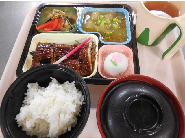 7月9日(木)に7月の誕生会をおこないました。 今月の誕生食は、皆さんに体力を付けていただこうと鰻の蒲焼きを提供しました。