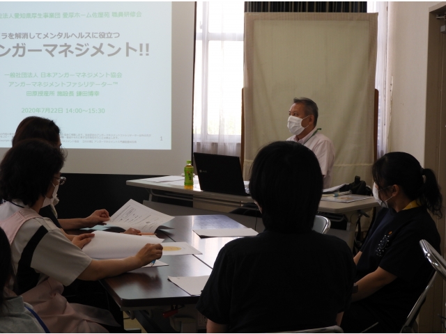 令和2年7月22日(水)社会福祉法人成春館 障害サービス事業所 田原授産所施設長 鎌 田 博 幸 氏 をお招きし、「アンガーマネジメント」についての職場研修を開催しました。
