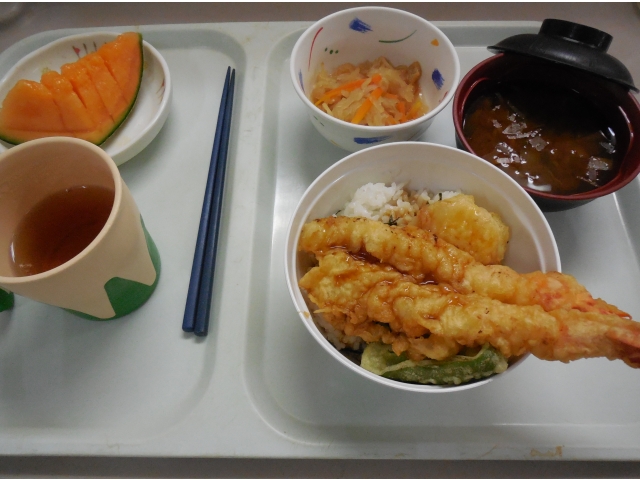 その前にお腹も満たしてもらうために大きなエビ天丼を提供しました。
