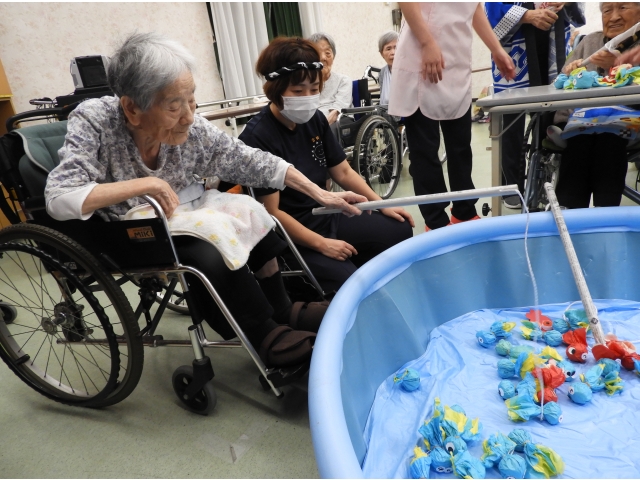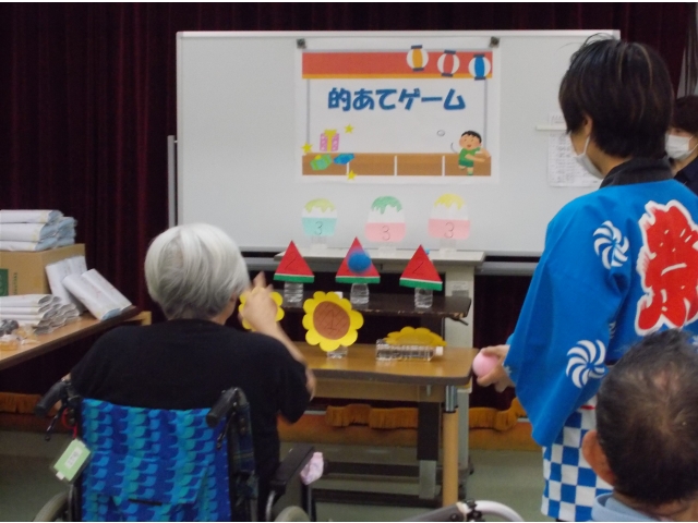 金魚釣りや的あてのゲーム、喫茶ではアイスクリームとお好きな飲み物を召し上がられ、多くのご利用者がいろいろな景品をゲットされ、楽しまれました。