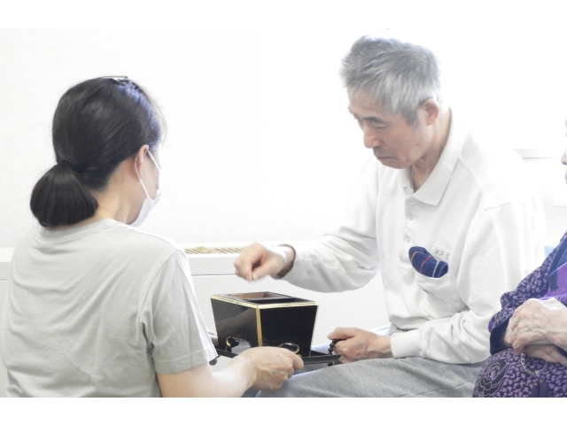 8月12日(水)に西照寺服部導師をお招きし、盆供養が催されました。当日は、利用者が密にならないよう間隔をあけて、物故者の供養を行いました。服部導師様の読経から始まり、しめやかに執り行われました。