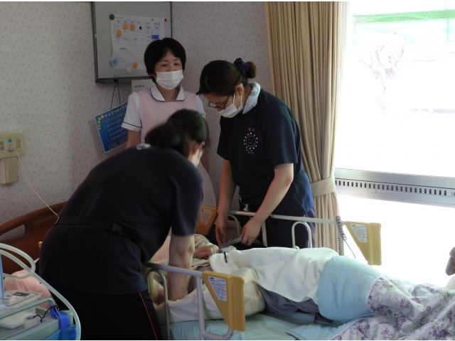 9月2日(水) 加藤介護主査が講師となって「夜間の緊急時対応」について職場研修を開催しました。 今回は体験研修です。夜間帯で限られた職員で、いかに連携をとって速やかに動けるか!1分1秒が利用者様の命と直結です。今回の研修は、「いざ!」という時、迷わず、慌てず動くための訓練です!職員一同しっかり連携を図りながら、利用者様が安心して暮らしていただくため、これからも頑張っていきます(^0^)V
