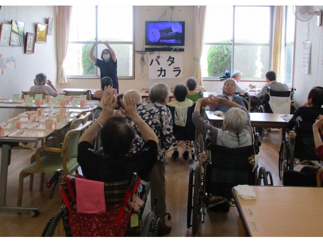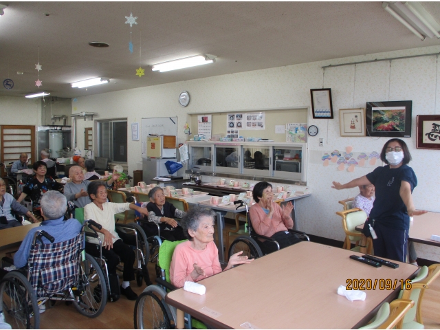 食欲の秋を向かえ昼食前に嚥下体操をして、おいしく食事をしていただいています(^▽^)