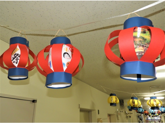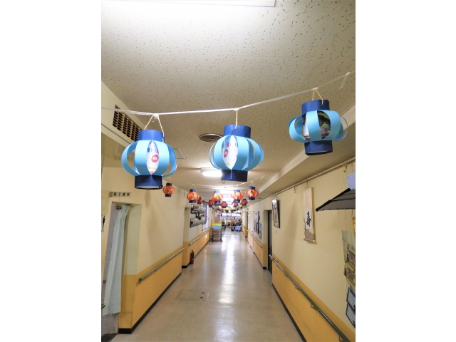 少しでも雰囲気をと、ペーパークラフトでちょうちんをメイン廊下に飾りました。中のイラストを変えるなど工夫しました🎵 10月25日には、毎年行っていた「秋の家族交流会」も中止となりましたが苑内でのイベントを企画しており、職員一同利用者さんに喜んでもらえるように準備しています。
