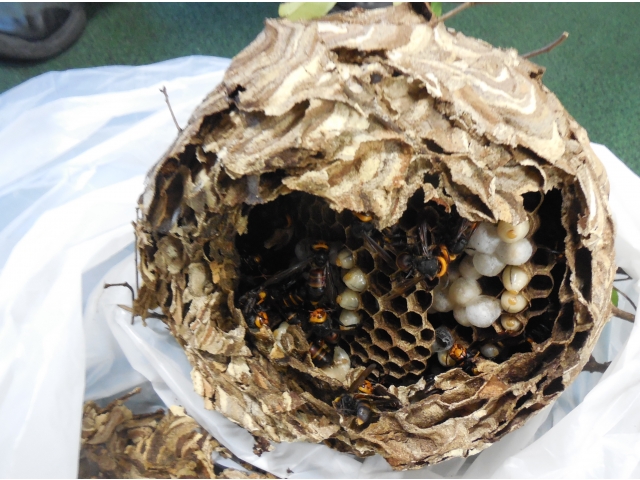 知らぬ間に敷地内でスズメバチが巣を作っておりましたので、業者に依頼し、駆除していただきました。アシナガバチの巣はよく見かけますが、スズメバチの巣を直接見るのは初めてでしたので、ひそかに感動している筆者です。ちなみに実際にハチに刺されたことはありませんが、ハチに刺される夢は時々見ます。今回は幸いにも被害者が出ませんでしたが、自然の脅威は身近に存在するということを実感させられる出来事でした。