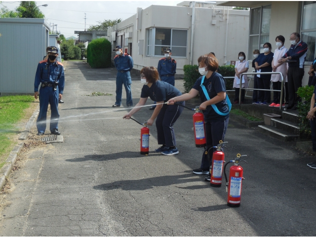 令和2年9月30日、晴天の下で総合防災訓練をコロナ情勢のなか感染防止に注意しながら規模を縮小して実施しました。 非常呼集訓練・自衛消防隊編成・地震発生から火災発生に伴う初期消火・避難誘導・救護訓練・消火器および消化栓放水訓練・心肺蘇生からAEDの取り扱いなどを行いました。
