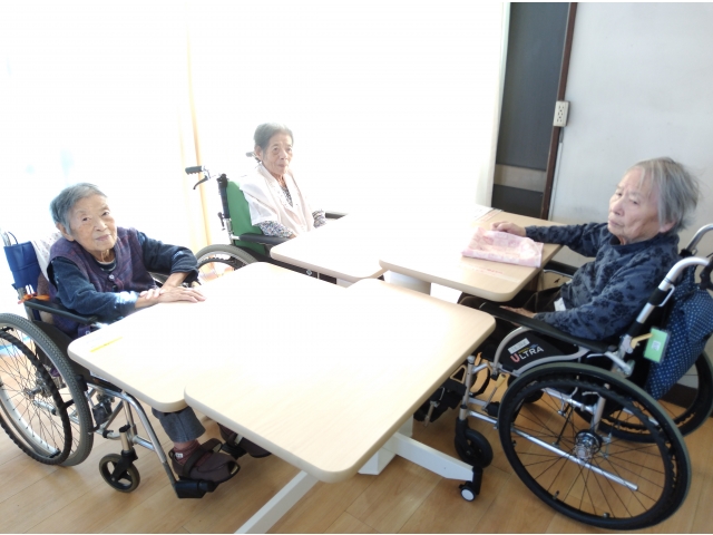 感染症対策と座位の安定のため、個別昇降テーブル”ここあ”を導入しました。 車椅子利用者の目線に合わせてテーブルの高さを調整できるため、食事時などの飛沫感染予防にもなります。 また、自身に合った高さで食事をとることができるため、利用者様にも今まで以上に食事時間を楽しんでいただけると思います。 職員の食事介助での負担も軽減されるため、感染予防を行いながら、利用者様とともに楽しい時間を過ごしたいと思います。
