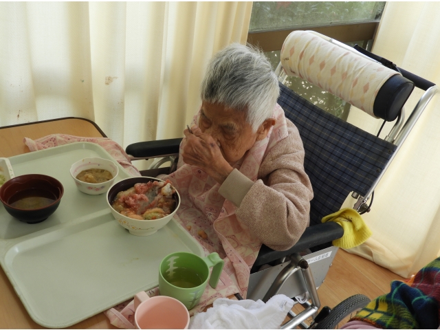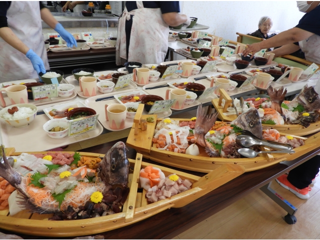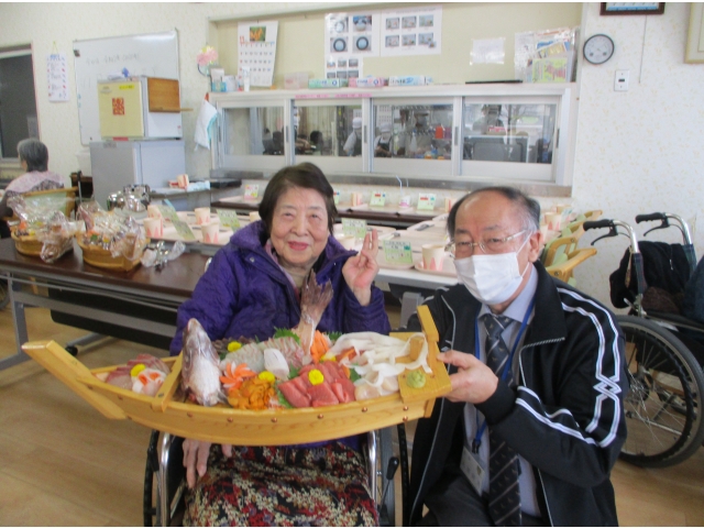 どのご利用者も新鮮なお刺身を丼ぶりにしたり、そのまま食べたりとそれぞれ堪能され、何度もお代わりをされた方もいました。 調理師の皆さん、朝早くから準備等していただき、今年も無事マグロ解体をすることができました。ありがとうございました。