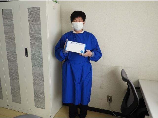 10月にいただいた使い捨て予防着に引き続きのご支援です。