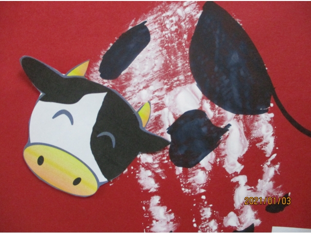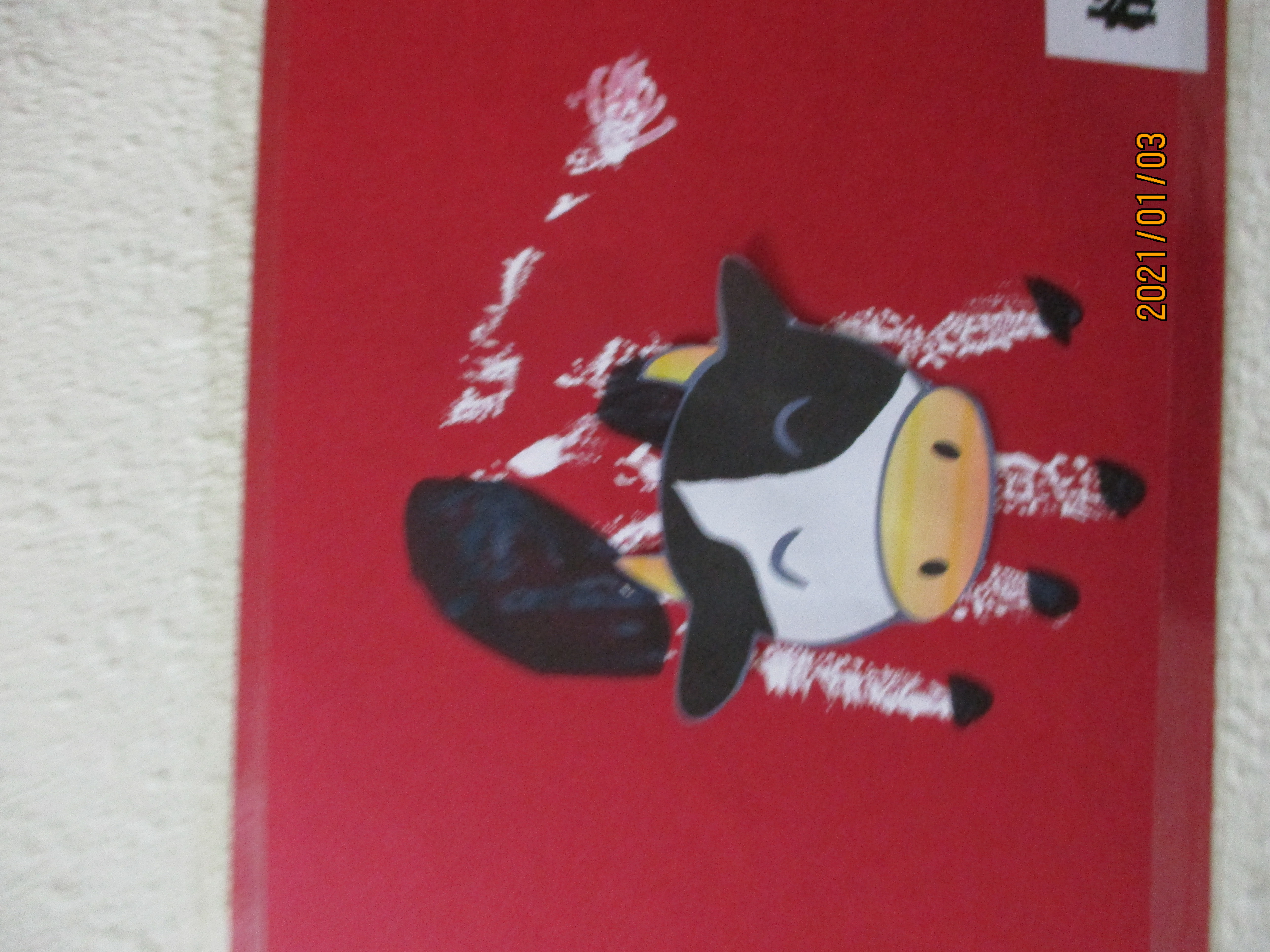 元気な手形で、穏やかな牛たちがのんびりと新年の始まりを飾ってくれました。
