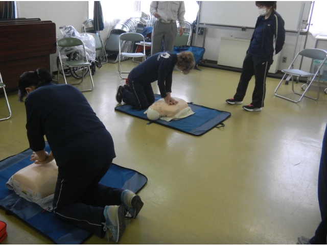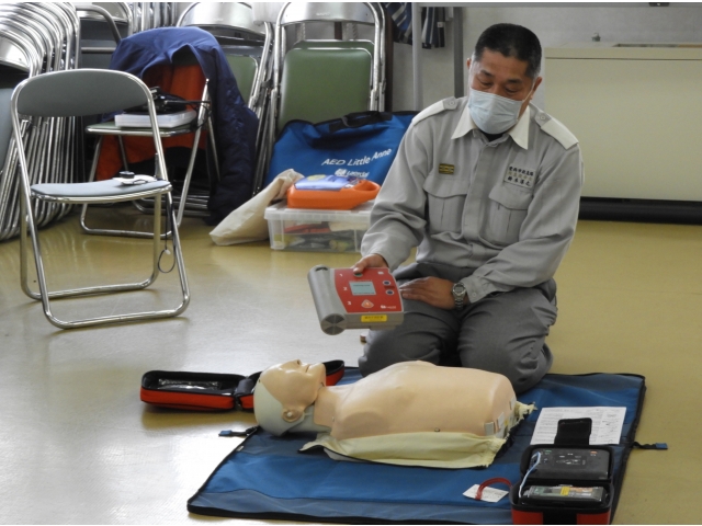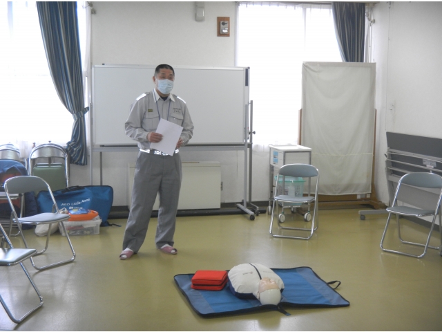 非常事態宣言の中 防災訓練(防災教育)を実施令和3年1月27日(水)に心肺蘇生およびAEDの取り扱いについて愛西消防署救急救命士伊藤氏を講師に招き行いました。 コロナ感染に気を付け密にならないよう配慮し、対処法を学びました。 最新の対処法は、マスクかタオル等で負傷者の口元を覆いかぶせる処置をし、心肺蘇生とAEDの使用をして救急隊を待つようにしてほしいとの事でした。