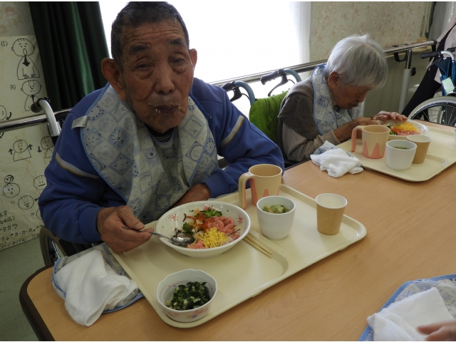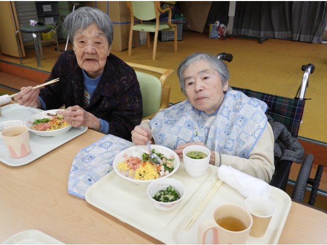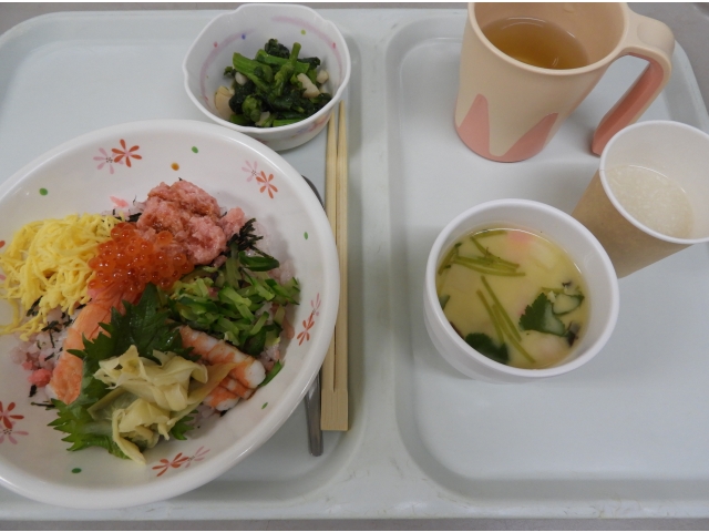 今日は桃の節句と言うことで、佐屋苑の食事もちらし寿司を提供しました。