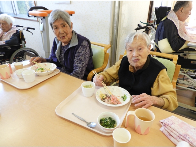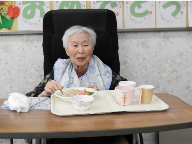 ご利用者に人気の茶碗蒸しと甘酒を付けて、皆さん、黙々と召し上がられていました。最後に「美味しかった」と笑顔が見られ、良かったです。これからも旬な食材や行事食を提供し、季節感を味わっていただこうと思います。