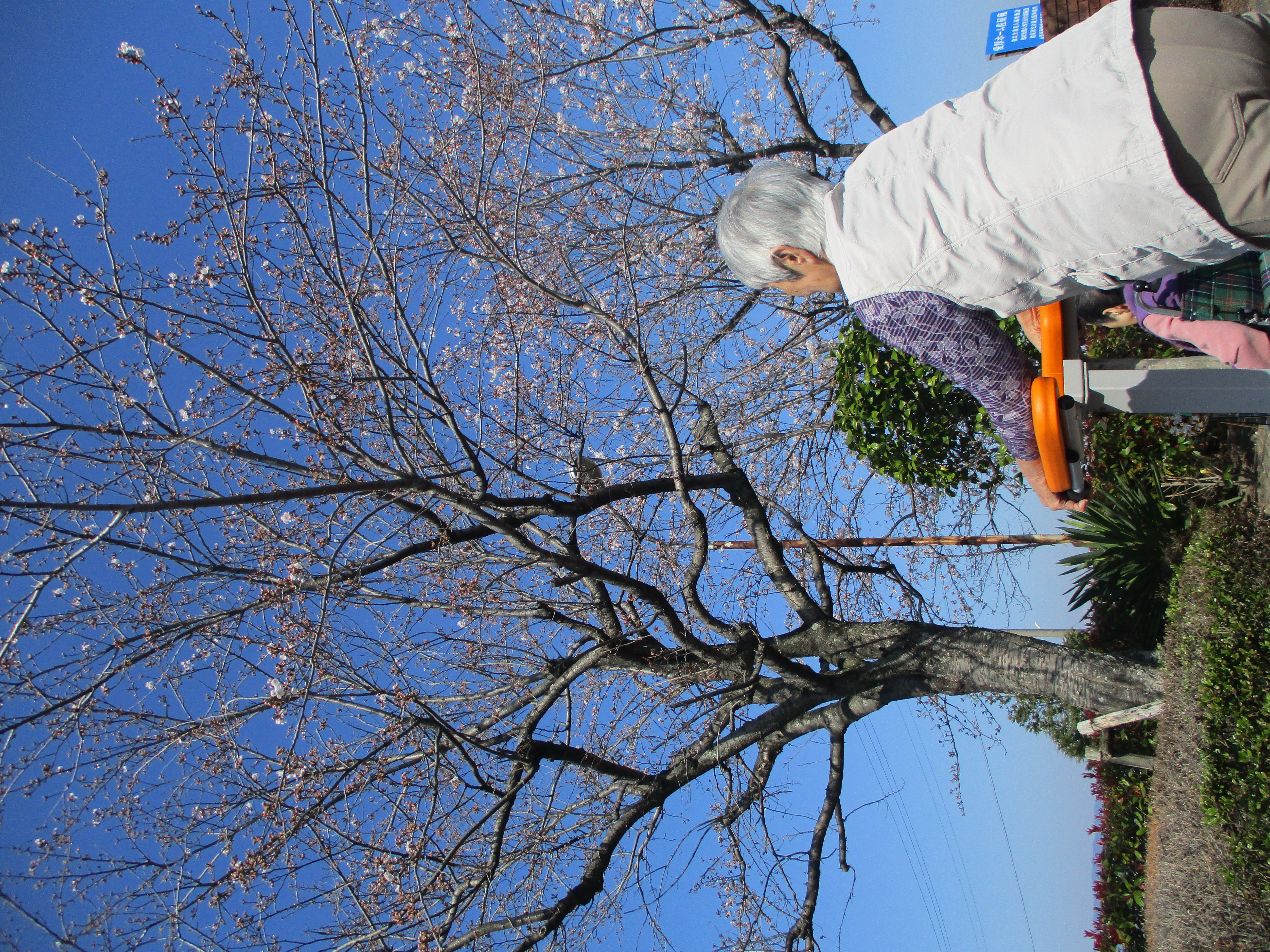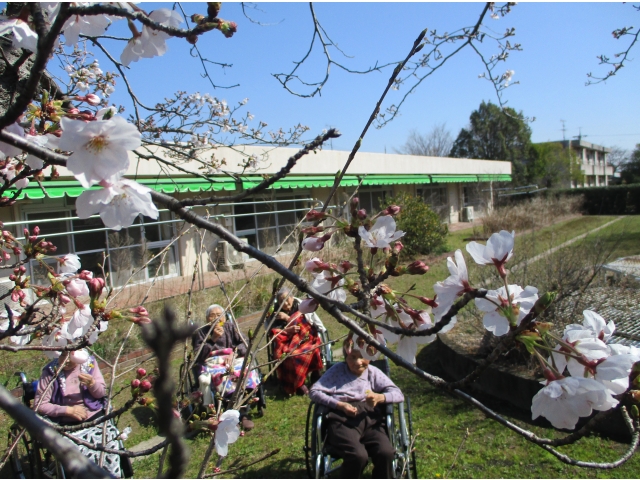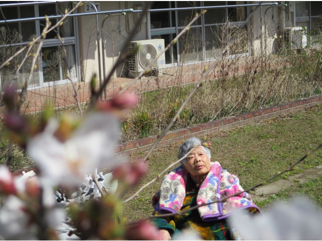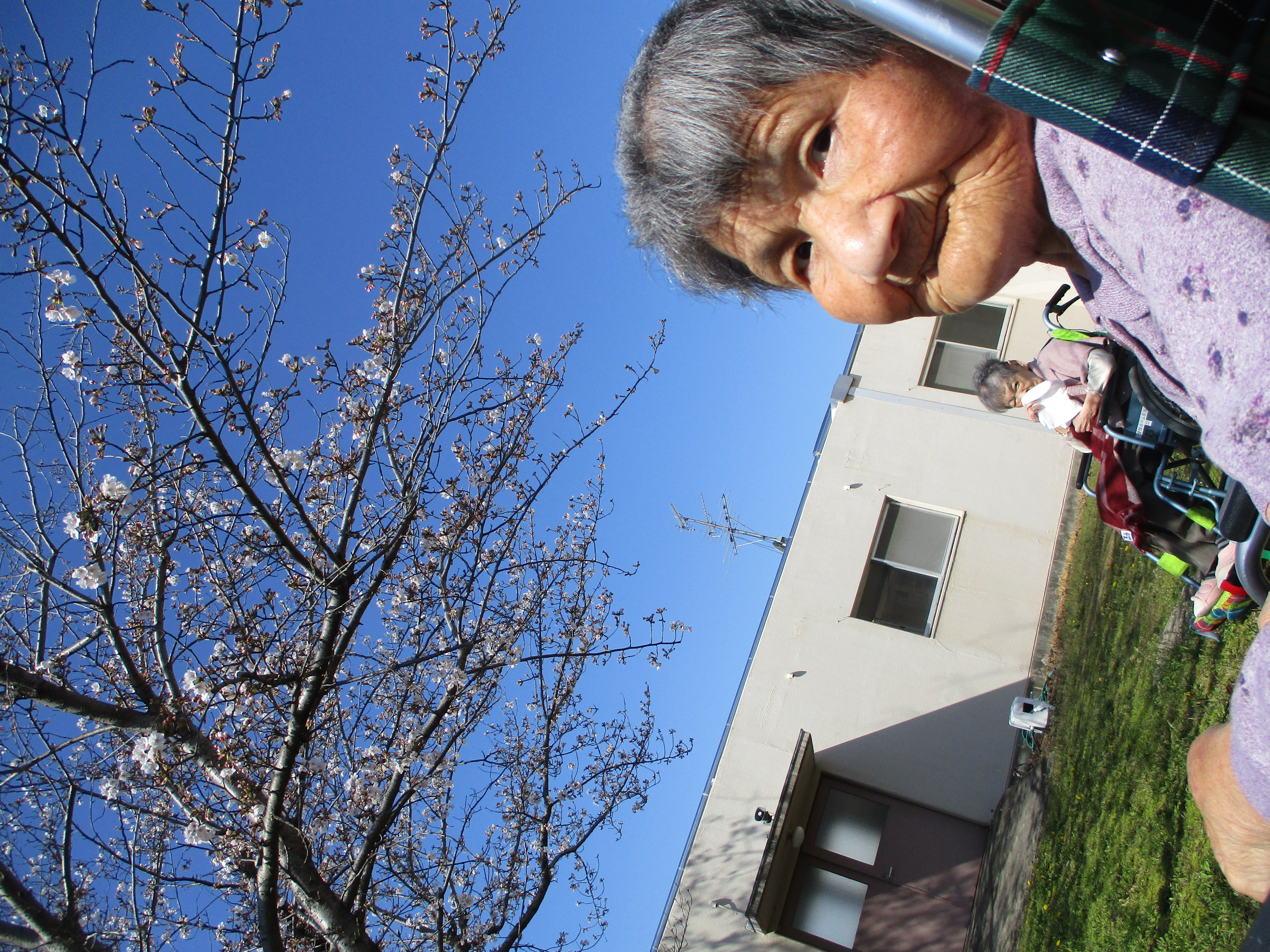 佐屋苑の桜もようやく花がつき始め、ぽかぽか陽気に誘われてひと足早いお花見日光浴をしました。雲一つない晴天と、桜のコントラスト。うっとり見とれ、穏やかな優しいひと時を過ごすことができました。