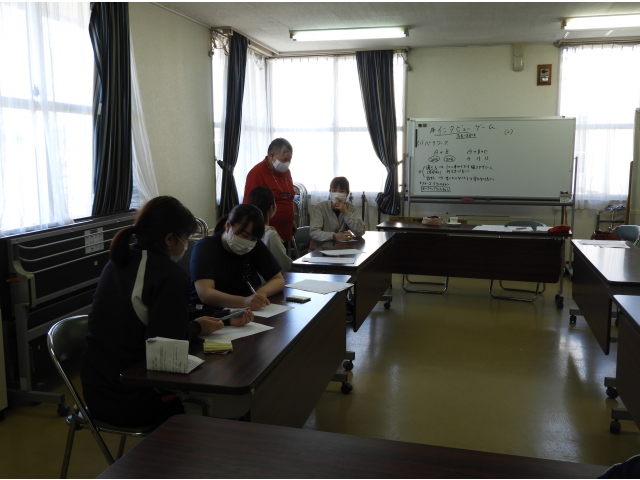 4月7日 NPO法人介護研究会笑の代表理事黒田敬氏より今年度採用及び異動の介護員さんに向けOJT研修として受講者に、又指導者になる人にも合同で行いコミュニケーションを図りながら、7名が受講しました。今後期間を置きながら数回行い、受講者・指導者ともにしっかりと安心した対応ができるよう努めていきます。
