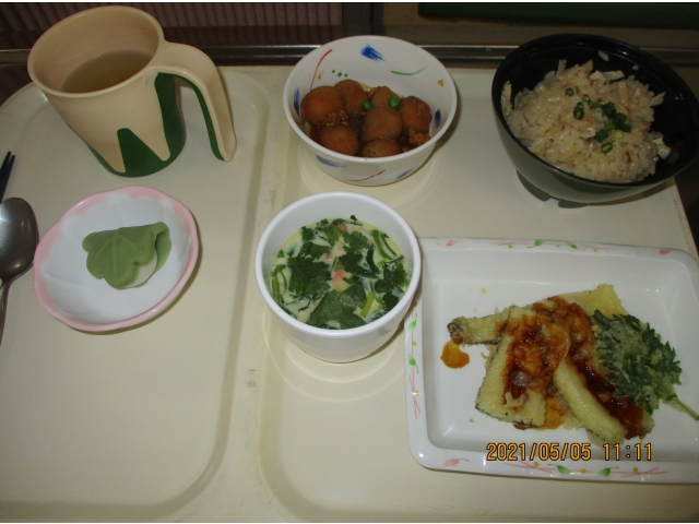 5月5日はこどもの日と言うことで、旬の食材を使った行事食を提供しました。