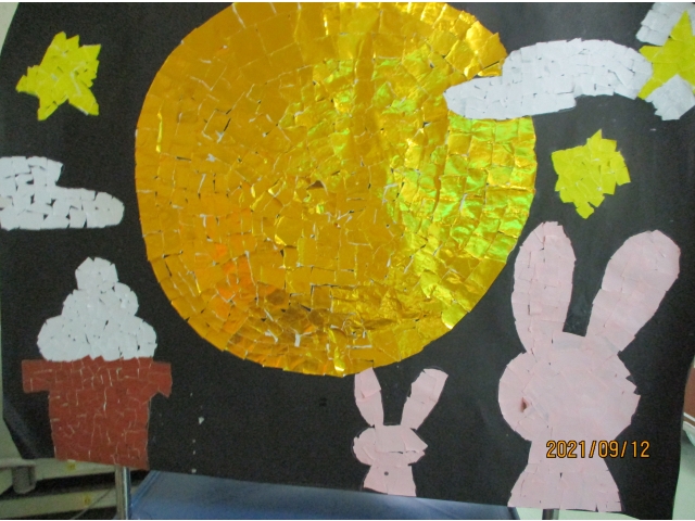 食堂には十五夜の満月がお目見え。当日はどちらがきれいな満月になるのでしょう。