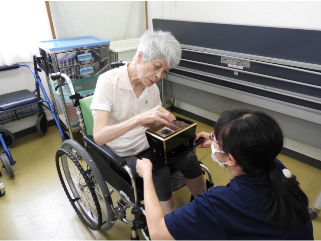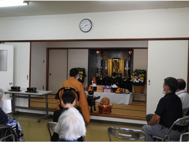 9月20日に秋の彼岸入りとなり、22日に秋の彼岸法要を行いました。蜜を避ける形で、少ないご利用者様に参加していただきました。西照寺の服部導師様の読経から始まり、しめやかに執り行われました。