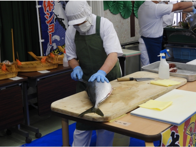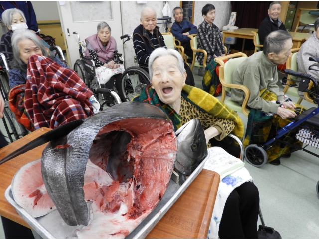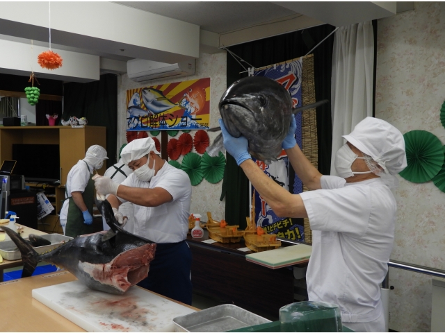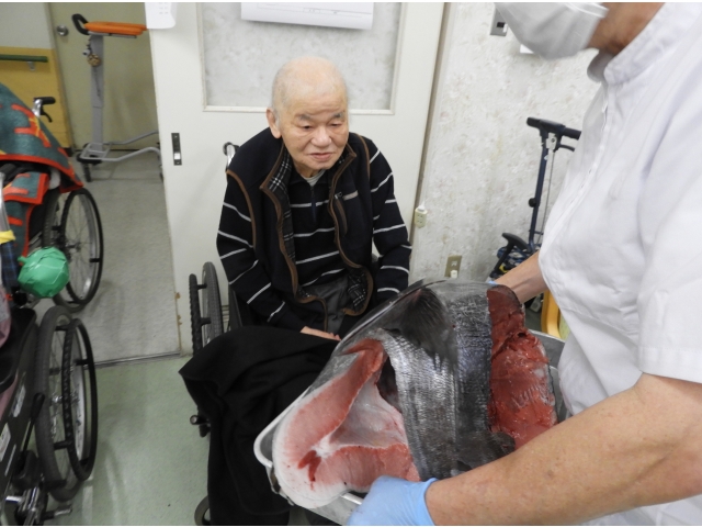 魚を捌いて30年以上のキャリアを持つ調理師が、手際よく次々とさばいて下さり、利用者の皆さんも歓声を上げながら楽しんでおられました。