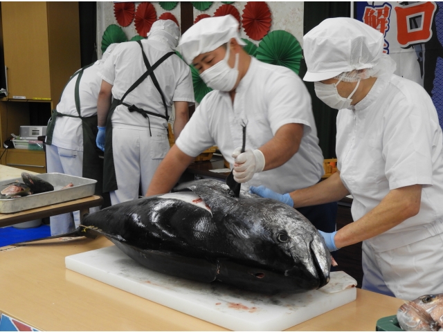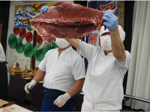 今回は、40キロを超える高級魚「本マグロ」に加え、真鯛、寒ブリを捌きました。
