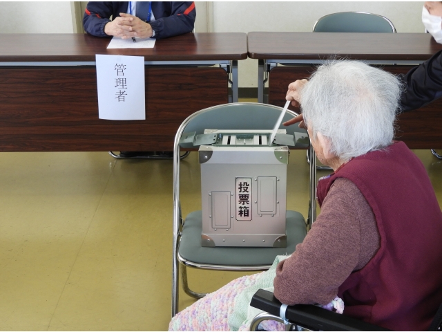 4月22日に利用者の方で不在者投票を希望される方に対して、市役所から立会人として総務課長さんに来ていただき実施しました。愛西市がますます福祉が充実していただけるといいと思います。