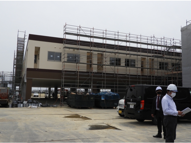 写真は、シートが外されてきた南フロアの状況、次に個室、そして多床室です。工事は順調に進んでおり、予定どおり7月の完成を目指しています。これからも、時々進行状況について、お知らせしますので、楽しみにしていてください。