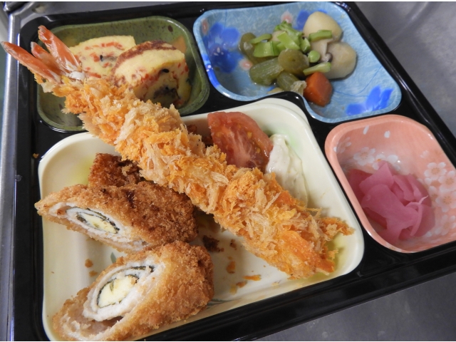弁当箱からはみ出るほどのエビフライに、皆さん大喜びで召し上がっておりました。