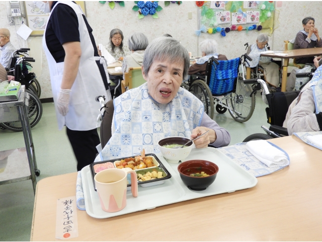 昼食時は、季節の食材を使用した弁当形式で、普段よりも少し豪華な食事となりました。