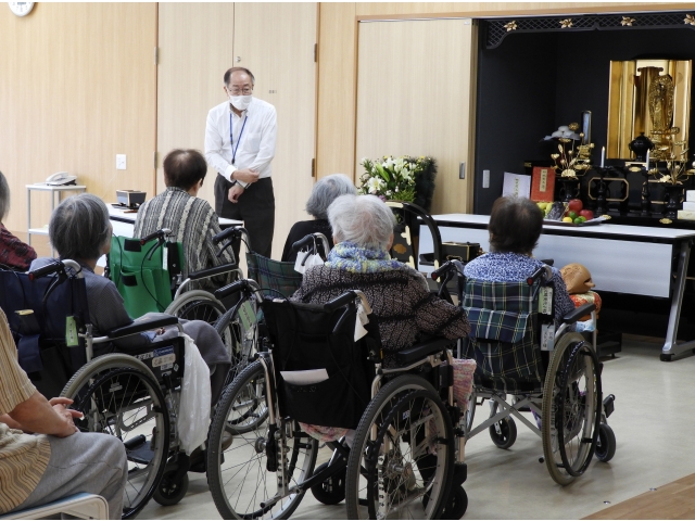 利用者の方も蜜を避け、約20名程の方がお参りをされ続けて職員が交代でお参りをしました。