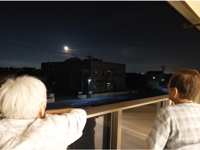 新施設になりテラスができたため満月の夜、みんなでお月見をしました。