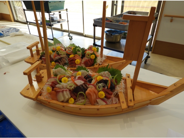 出来上がった船盛は、昼食時におかわりとして提供し、