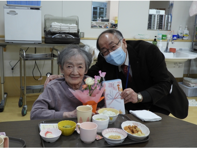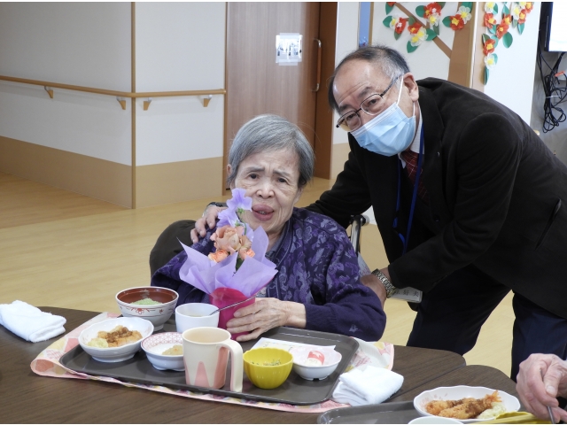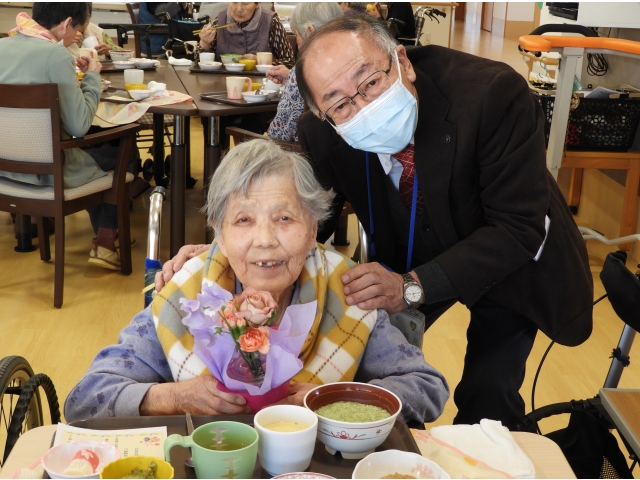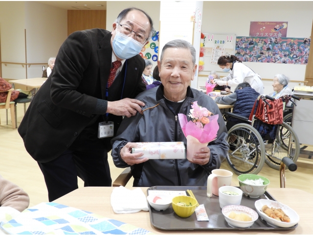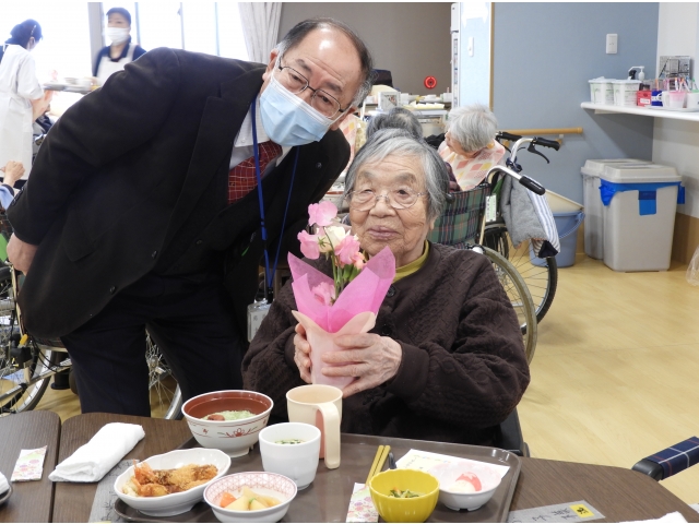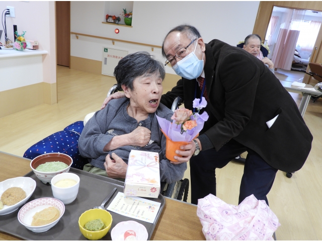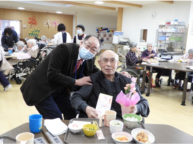 皆さんとってもいい笑顔で苑長からお花とお祝いのプレゼントを受け取っていました(*^^*)
