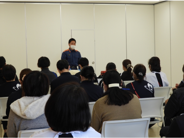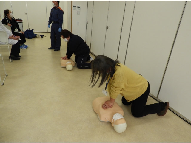 一般救急講習(職場研修)を愛西市消防署員の方に実施していただきました。心臓マッサージとAEDの使用方法について学ぶことで、いざという時にもうろたえることなく対応できるようになったと思います。署員の方がおっしゃられた3つの「押す」①心臓を押す。②AEDのボタンを押す。③自分の背中を押す。を忘れないようにしたいと思います。