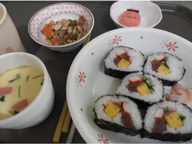 本日2月3日は節分の日と言うことで、昼食は恵方巻を提供しました。