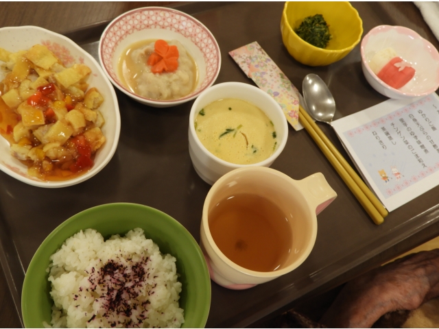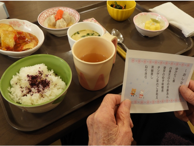 添えられたお品書きをじっくりと見つめ、食事を楽しんでおられました。