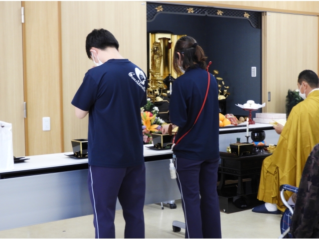 3月22日㈬に、西照寺 服部住職による、春の彼岸法要を行いました。 新施設となり場所が広くなったことで、より多くの方がお参りに参加していただくことが出来ました。当苑で亡くなられた方を始め、それぞれの親族を想い、皆様で手を合わせました。