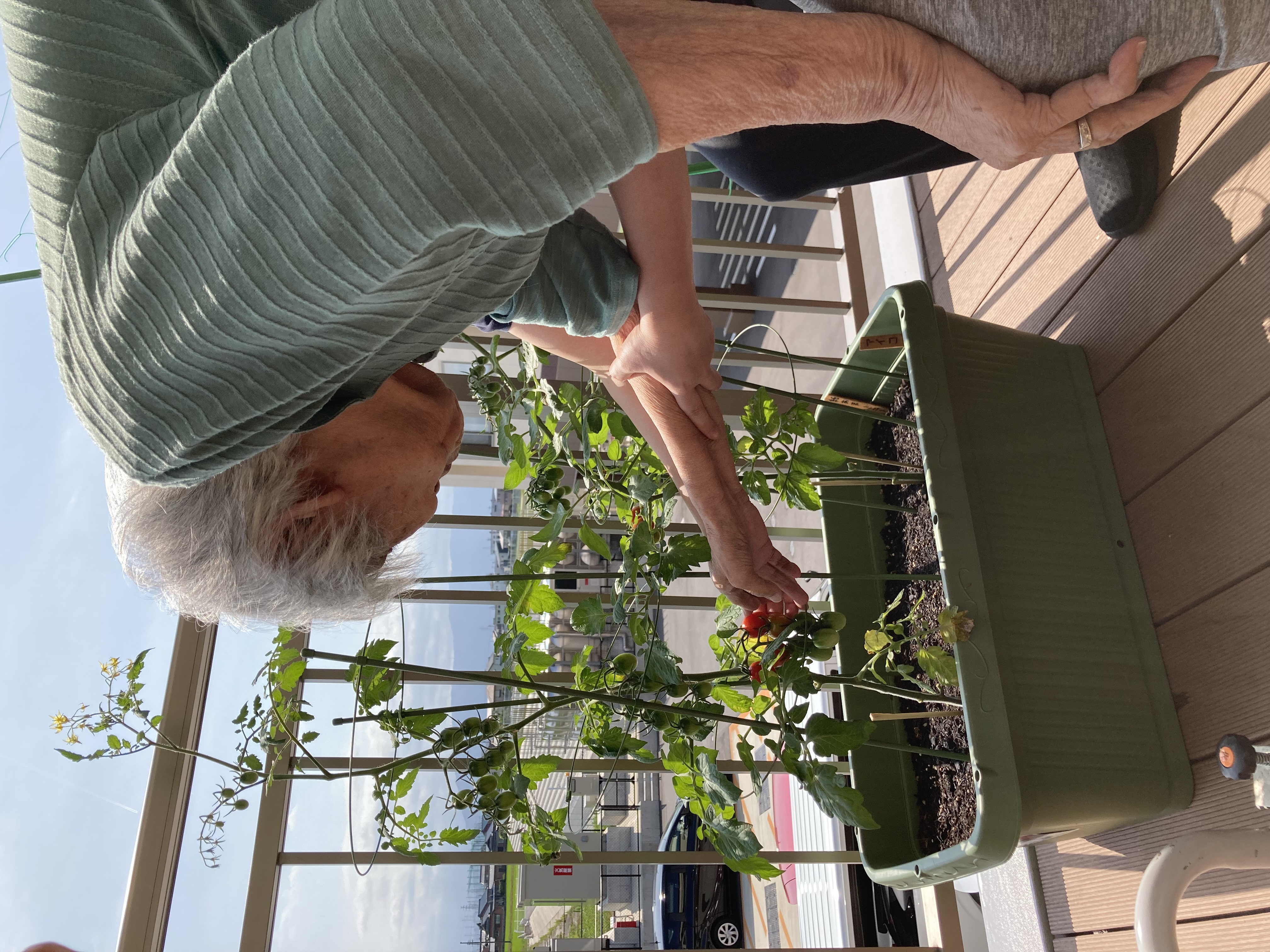 ゴールデンウイークに植えたミニトマトが色づき始め、赤く食べごろになったトマトを初収穫しました。