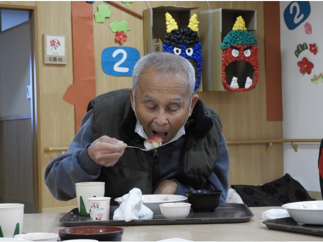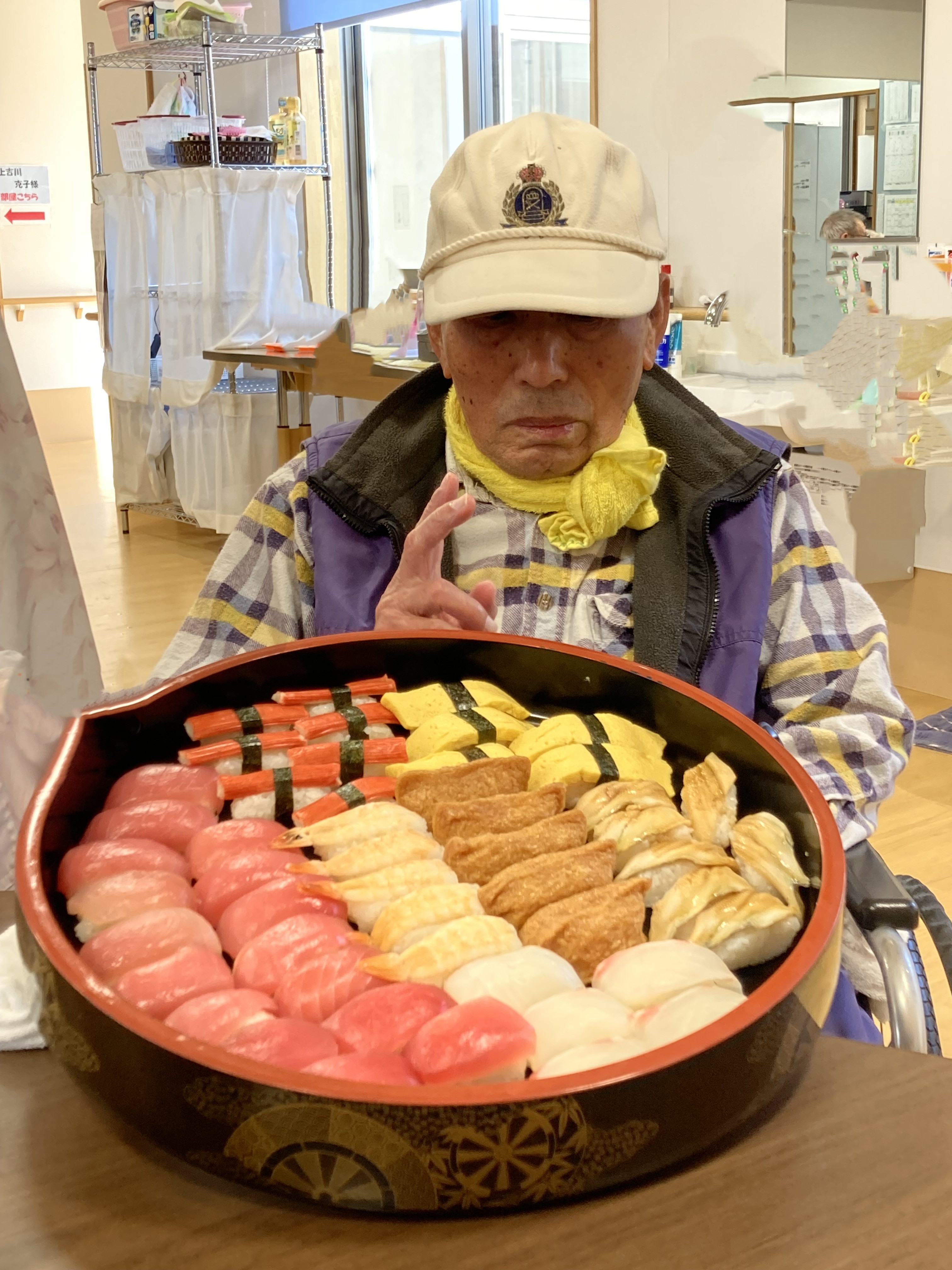 2月14日(水)世間ではバレンタインデーですが、佐屋苑では利用者さん大好評の 「寿司バイキング」が行われました。お代わり自由とあって、みなさん何度もお代わりされたくさん召し上がられました。