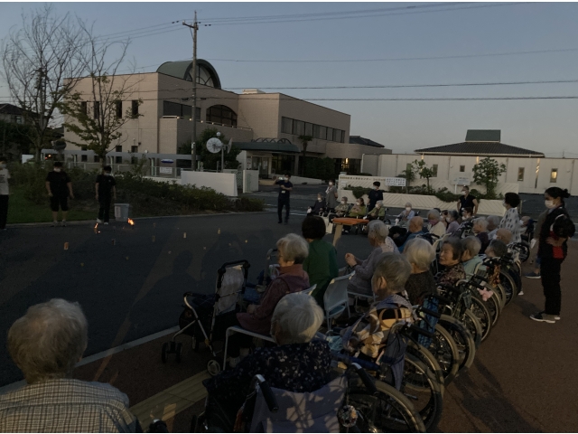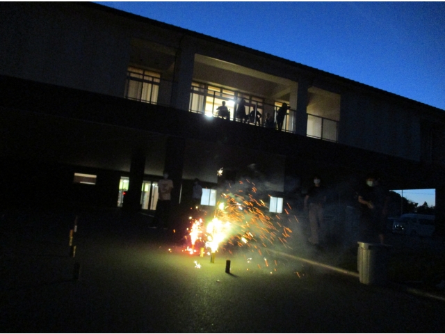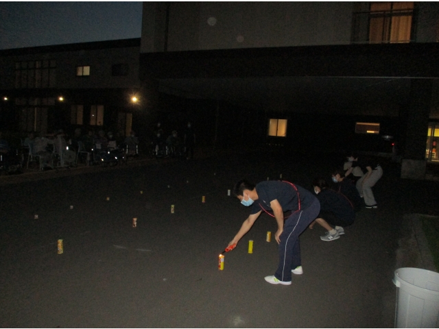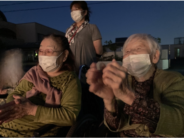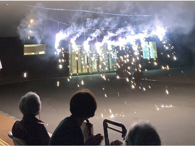 9月17日 十五夜の夜、夏の家族懇談会が中止となり利用者さんに楽しんでもらえる企画を考え、佐屋苑で初めて花火大会を開催しました。
