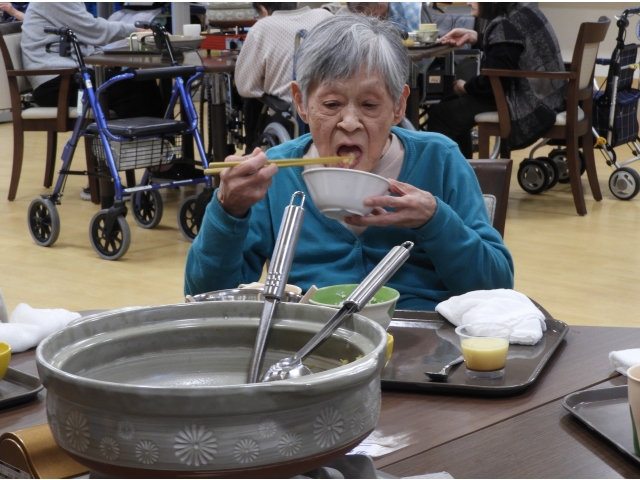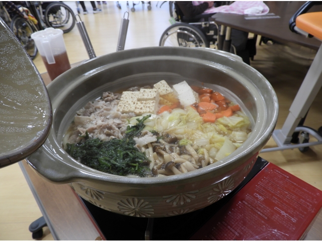 2度目の鍋料理は「豚ちゃんこ」鍋でした🍲 一つの鍋がなかなか湯気が出ず「火が弱いよ」とご指摘が💦「これだけガスが少なかったからね」と。いいにおいが町全体にただよってきたので待ちきれないですよね~。 今回もおかわりたくさんしていただき、お鍋の中はピッカピカ✨