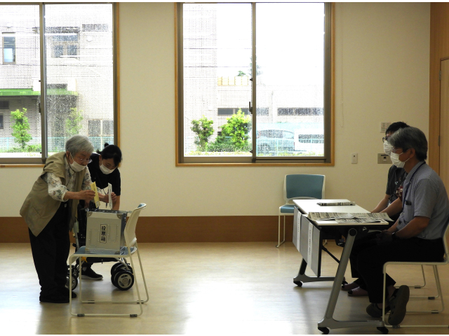7月16日(水) 愛西市役所職員立会いの下衆議院選挙不在者投票を行いました。並んでいる間に候補者のチェックをしたり、投票場で党名・名前の確認をし、みなさん投票されていました。