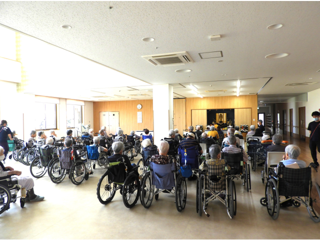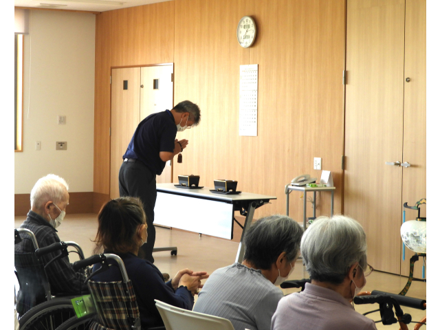 8月13日 西照寺 服部正法住職にお経を唱えてもらい、盆供養を行いました。たくさんの方に参加いただきました。盆提灯に明かりをともしみなさんご先祖様に感謝の気持ちをこめ、手をあわせられました。