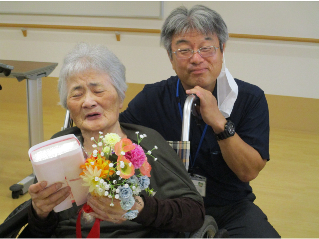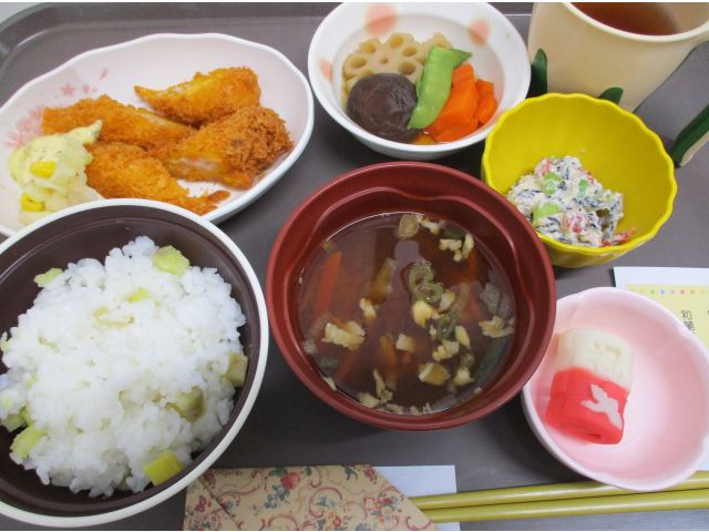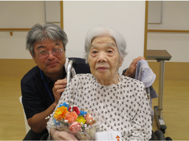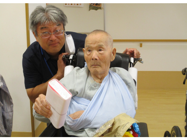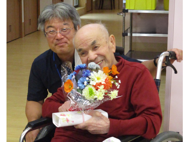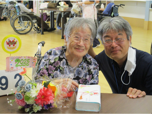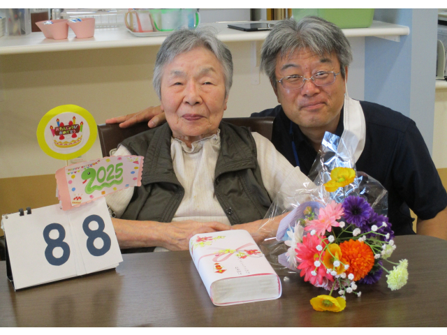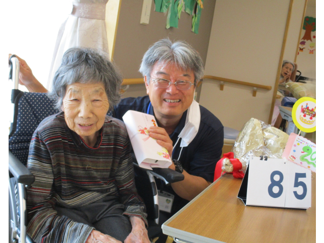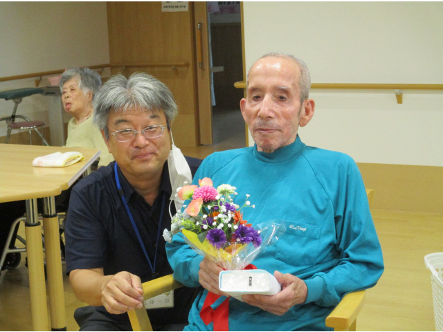 9月11日(木)に誕生会をおこないました。本日の誕生食はご利用者にも人気があるさつま芋ご飯とエビフライを用意しました。