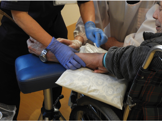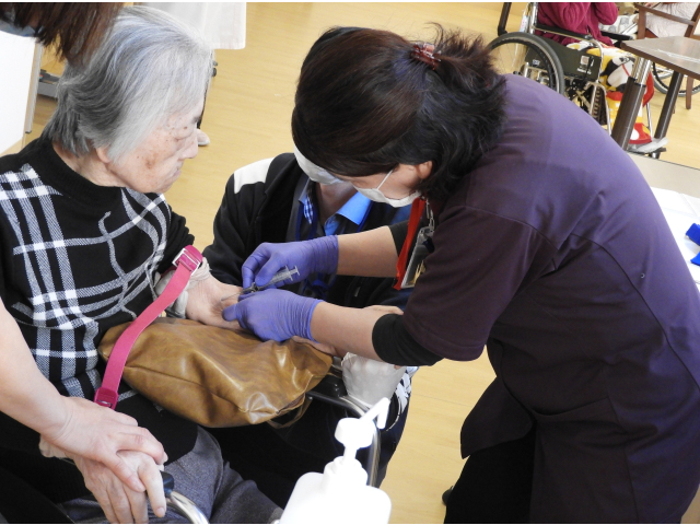 11月19日 利用者健診で採血を行いました。10月末よりインフルエンザ予防接種も行っていますので、「また注射?」と注射が苦手な方にとってはつらい時期です。これも、みなさんが健康に過ごしていただくためなので頑張っていただきました💪